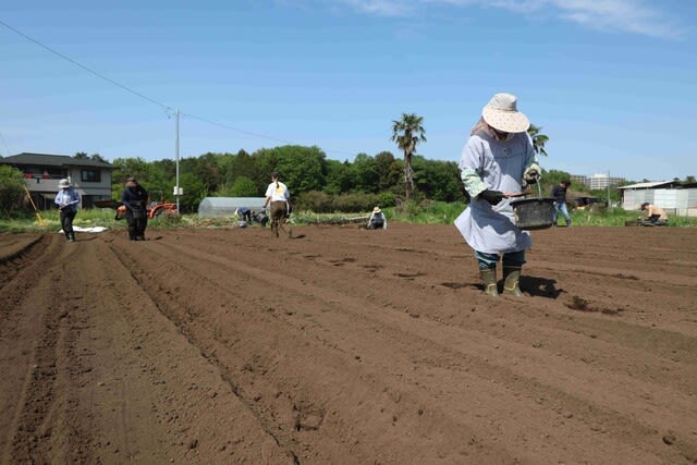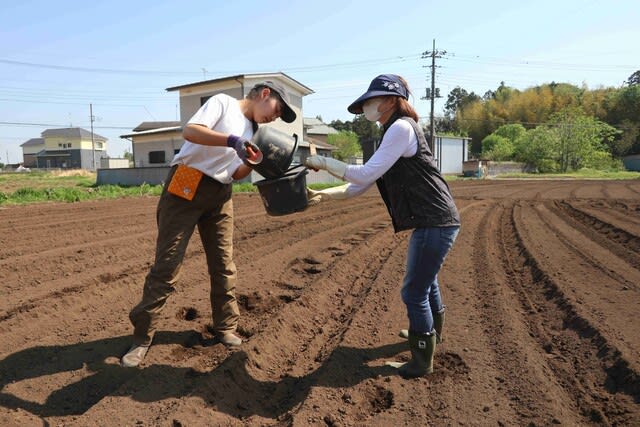 植える場所に全面マルチ張りを若者たちにお願いしました。
