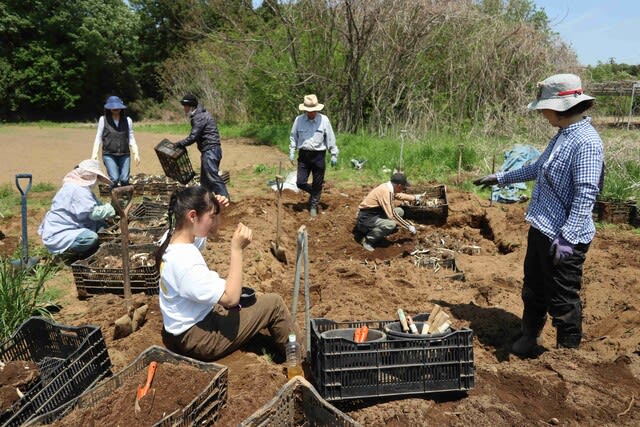 例年ですとトラクターローダーで土を取り除くのですが、トラクターは耕耘に使用され全部手作業になりました。