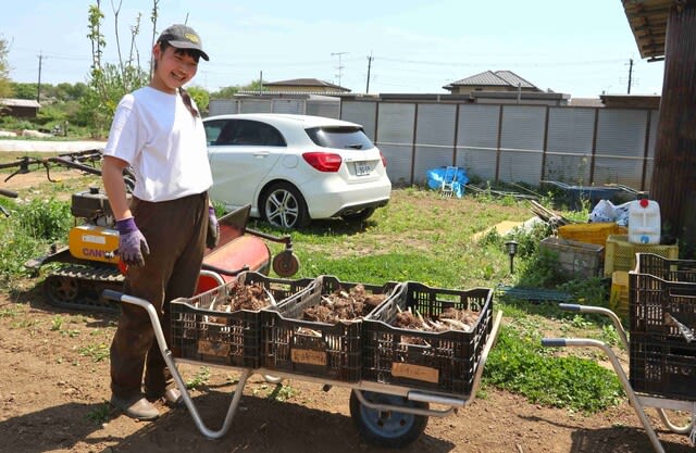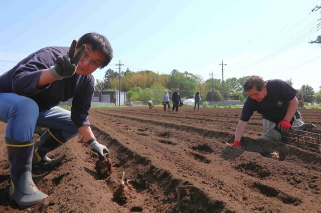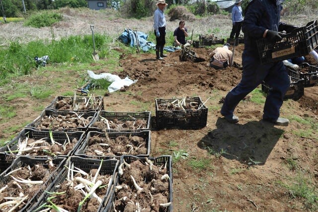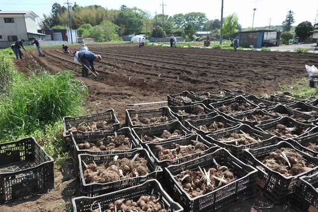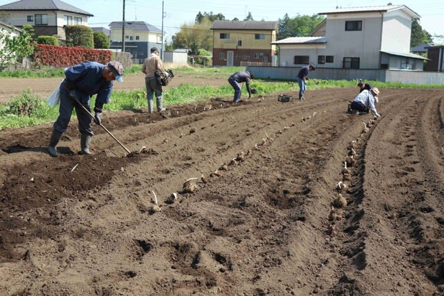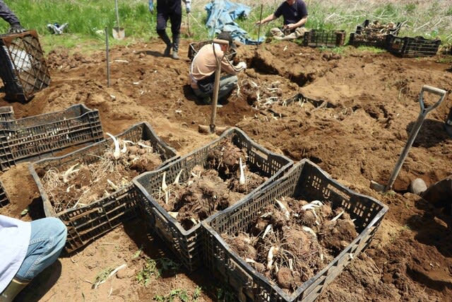 子芋、親芋を30ケースくらい埋めてあり、手作業で掘り起こし。
