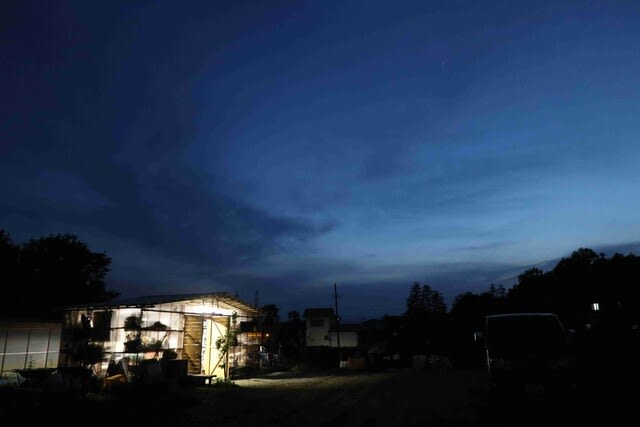 小屋に明かりが付けられ、私は久しぶりに真っ暗になるまで作業をしていました。夕焼けもなかったけど、黄昏時までいないと仕事したという満足感を味わえない。