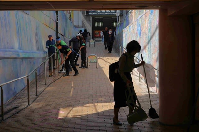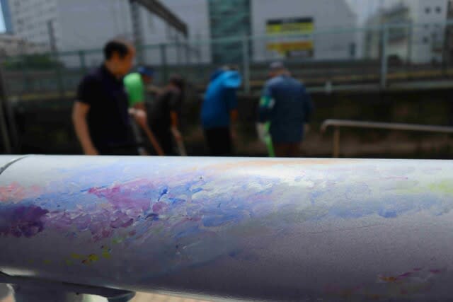 植田さんはさすが壁面の絵の汚れが気になると見えて、ずっと雑巾で拭き掃除。