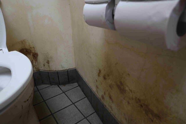 男子トイレですが、床や壁に大便がへばり付いているし、小便器にも大便がしてあることもあるとのこと。