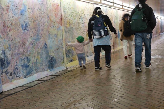自転車、スーツケース、ベビーカー等の東西通行路は限られています。