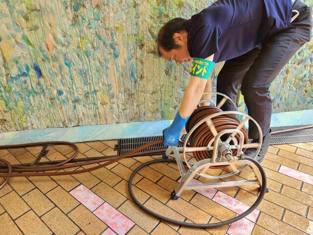 ONDさんは天井や壁面拭き、ホース管理をしています。