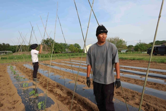 3月から時期をずらしながら苗づくりをはじめ、2万本のトウモロコシ植えは終盤。