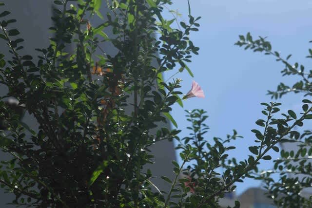 枝に絡んで昼顔の花が咲いていました。