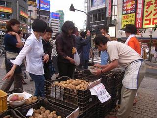 このイベントは池袋西口公園の「フォーク&ウェスタン・カーニバル」という音楽イベントで我々アイポイントのメンバーが大久保農園で収穫した「ジャガイモ」を地域通貨アイポイントを持って来て下さった方々にご褒美として差し上げるというものなのです!