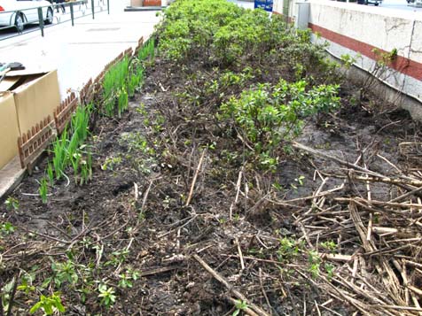 さて、荒れた植栽帯をどう手入れしましょうか。