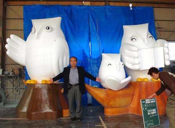 発泡スチロールでつくられた実物大のえんちゃんフクロウです。