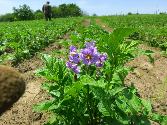 文殊第二畑のジャガイモ。チラホラ花が咲いてきました。