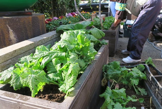 菜の花の種をあちこちに蒔きましたが、蒔く時期が遅く、大きくなっていません。